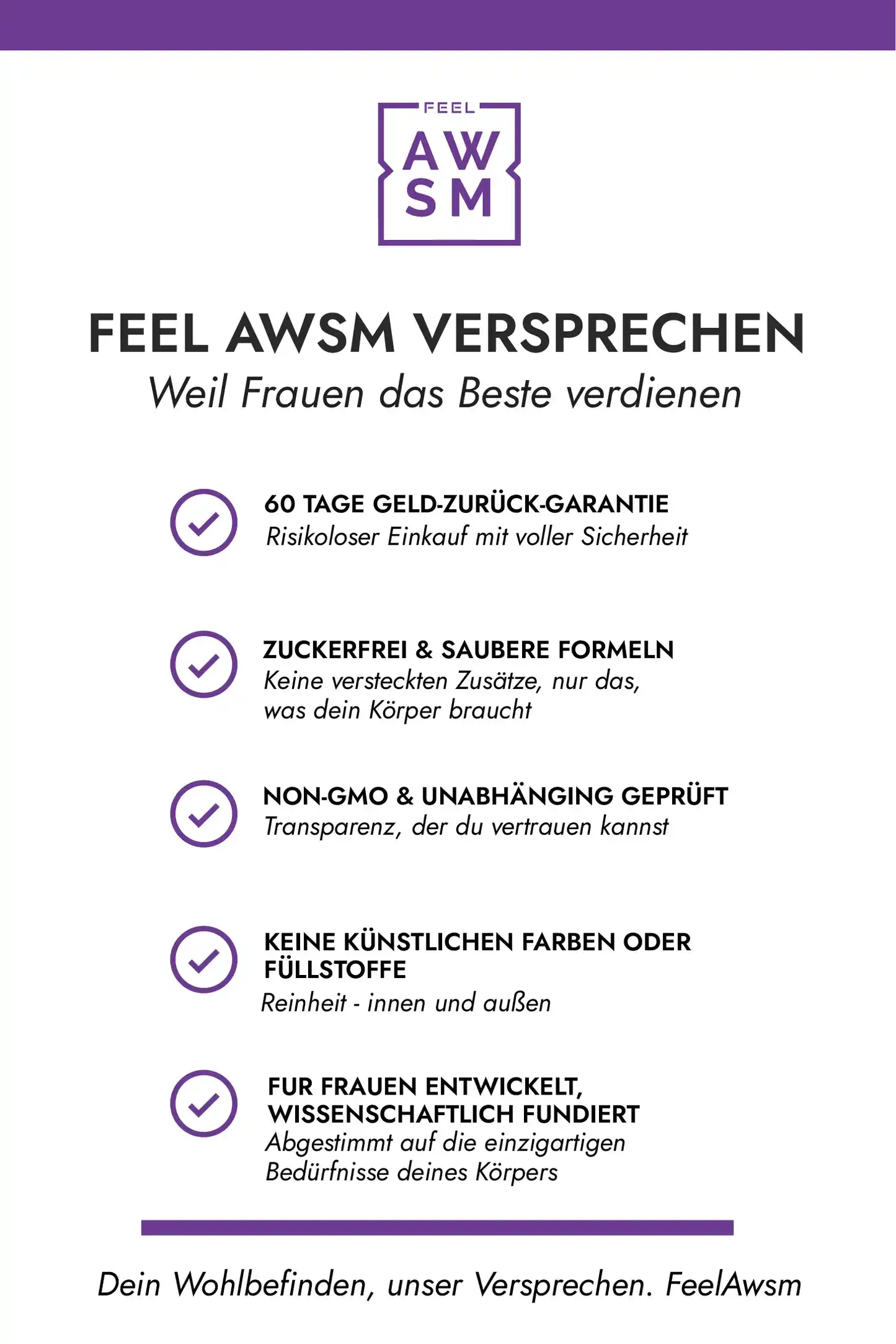 Zuckerfrei · Fastenfreundlich · Reine Flüssigkeitszufuhr für Frauen