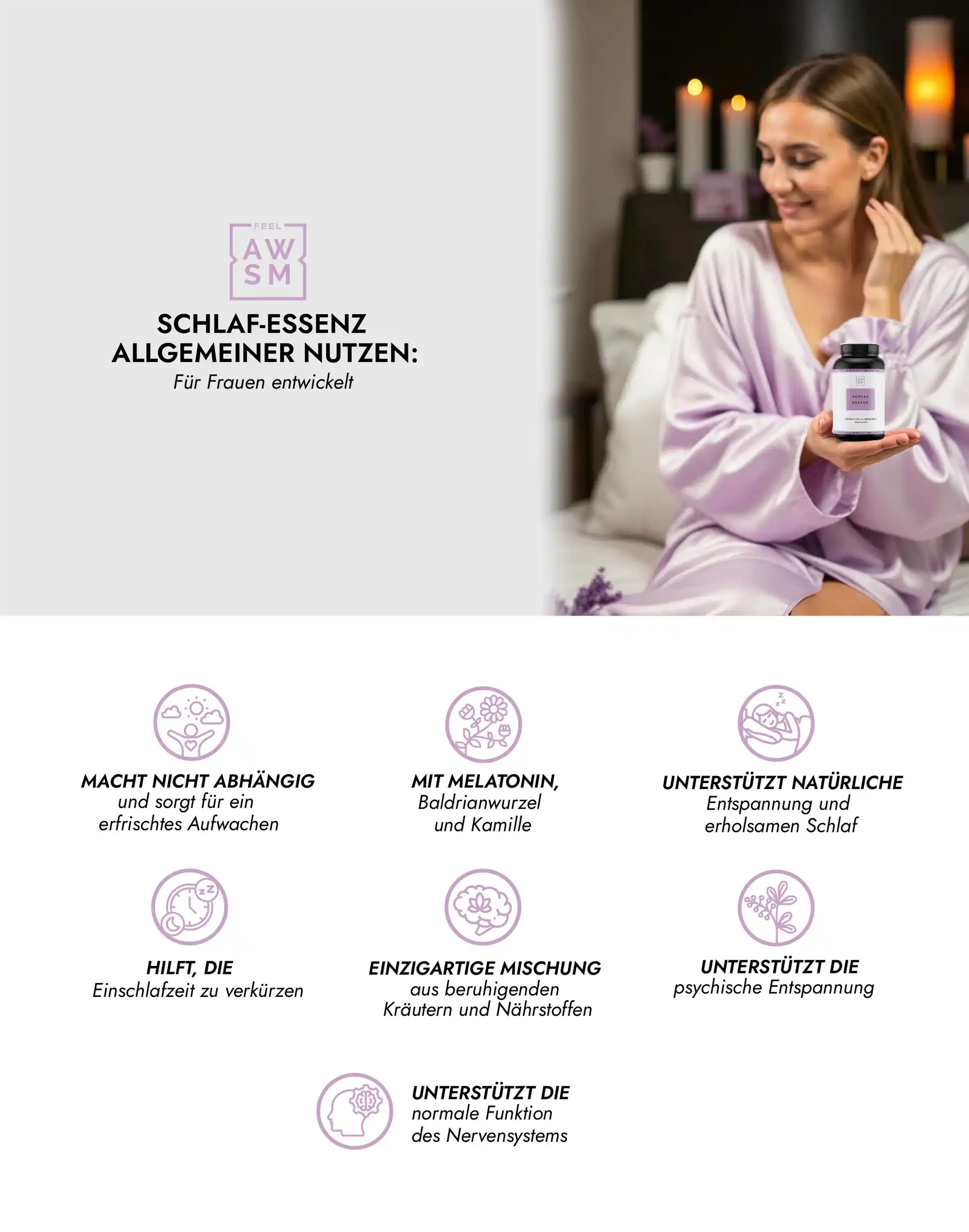 | Speziell entwickelt für den durch Stress beeinträchtigten Schlaf-Rhythmus von Frauen. | ||